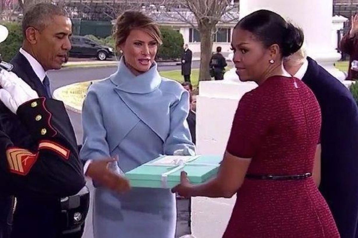 Melania Trump's parting gift to the former first lady set tongues wagging yesterday, not least because of Michelle's priceless reaction to the present.